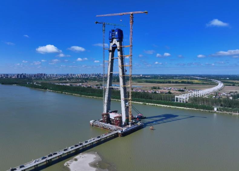 9月24日,由中交一公局集团承建的武荆宜高速公路天门荆门界至二广高速段项目(简称武荆宜高速)汉江特大桥主跨首片钢梁顺利吊装就位,标志着国内最大跨径无辅助墩组合梁独塔斜拉桥主梁建设正式拉开帷幕。