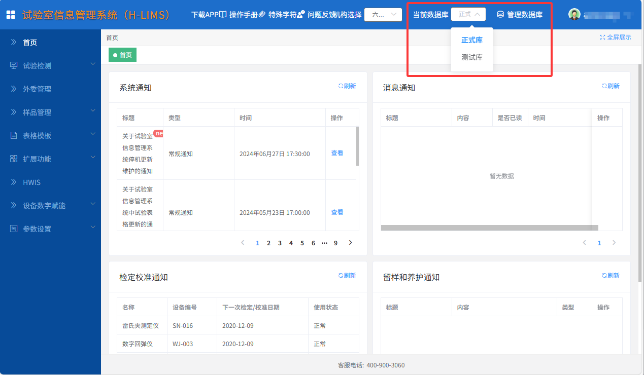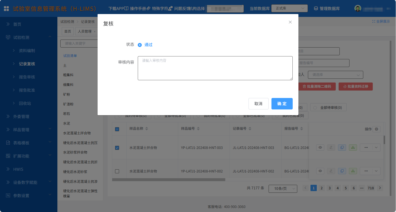 面对多维度管理与资质合规痛点,系统从两方面提供支持:一是多资质与多数据库设计,可满足公路、水运、铁路、建工、水利等多个工程行业的资质需求,同时提供正式数据库(用于业务开展)、测试数据库(用于系统启用评审)、练习数据库(用于员工学习),适配不同管理场景;二是全周期管控功能,在样品管理上,可登记试件养护信息、导出台账并提供到期提醒,避免养护遗漏;在设备管理上,覆盖仪器设备的申购、采购、验收、检定、校准、停用、报废等全生命周期,还包含标准物质、危化品、试剂管理,满足资质认定、CNAS 认可等要求;在人员管理上,可集中管理试验室人员信息,确保人员资质与岗位匹配。