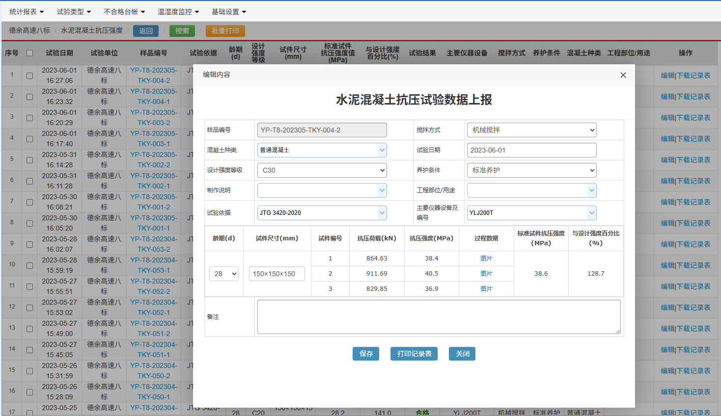 为解决统计分析与台账编制难题,系统的统计分析子系统具备强大数据处理能力:可自动汇总形成样品台账、检测台账、不合格台账,无需人工逐一整理;能快速汇总试验检测资料生成检测月报,减少月报编制的时间成本;针对压实度、水泥混凝土抗压强度、抗弯拉强度等需要汇总评定的项目,系统可自动完成数据汇总与结果评定,同时支持分部分项资料管理,提升数据利用效率与评定准确性。
