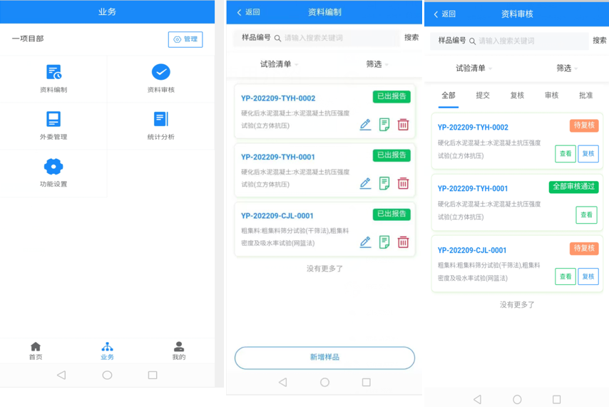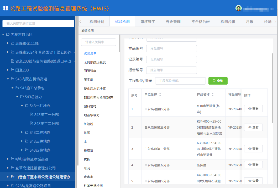 统计分析与台账编制负担:人工汇总样品、检测、不合格台账耗时久,月报编制易出现数据偏差,分部分项检测结果评定效率低。