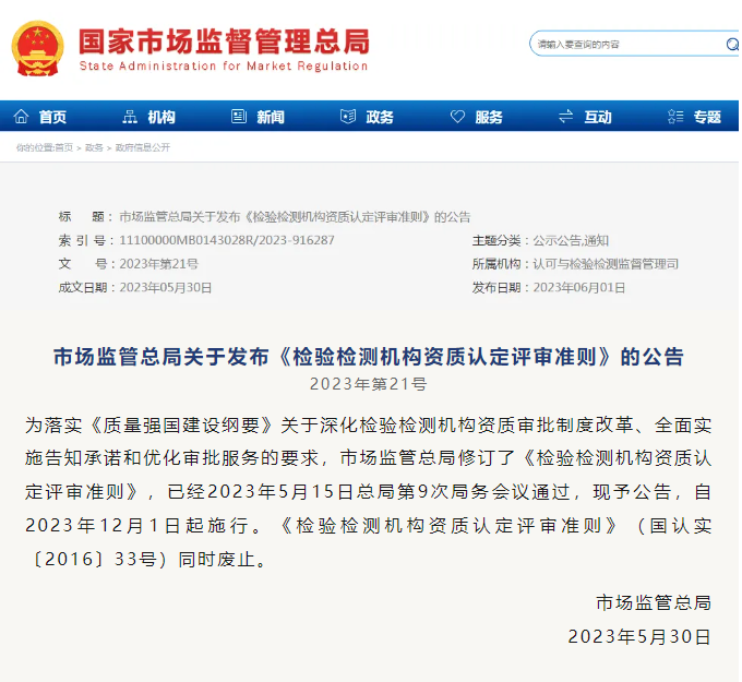 此外,根据新版准则评审要求,对主体机构的法律地位、人员的合法劳动关系、具有完全独立支配使用权的场所和设施设备、检验检测方法的验证和确认等条款出现不符合时,审查结论将为“不符合”或“承诺严重不属实/虚假承诺”。