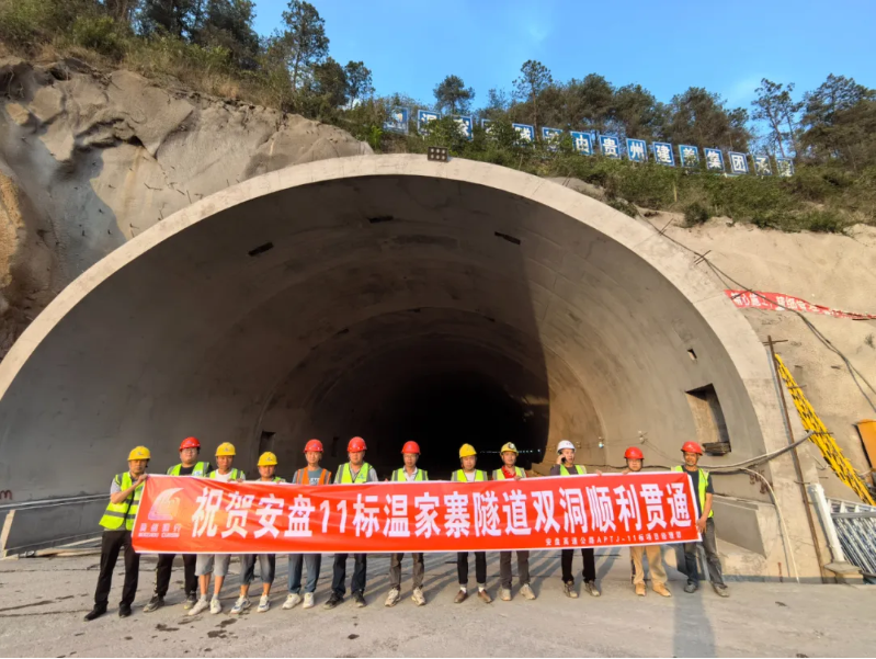 4月16日,经过300余天的精心施工,由贵州省公路建设养护集团承建的安盘11标温家寨隧道双洞贯通,为安盘11标全线通车奠定坚实基础。