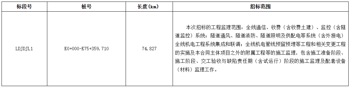 2.1 招标项目或标段(以下简称:招标项目)名称:湖南省零陵至道县高速公路项目机电工程施工监理项目