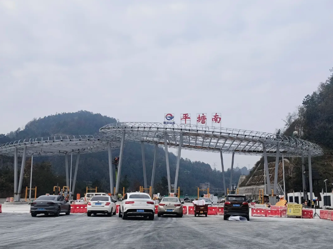 贵平高速平塘北收费站施工现场负责人帅兴忠介绍:“站区里面已经达到交业的状态,现在正在抢建收费大棚,收费大棚的钢结构已经到了装饰的收尾阶段。”