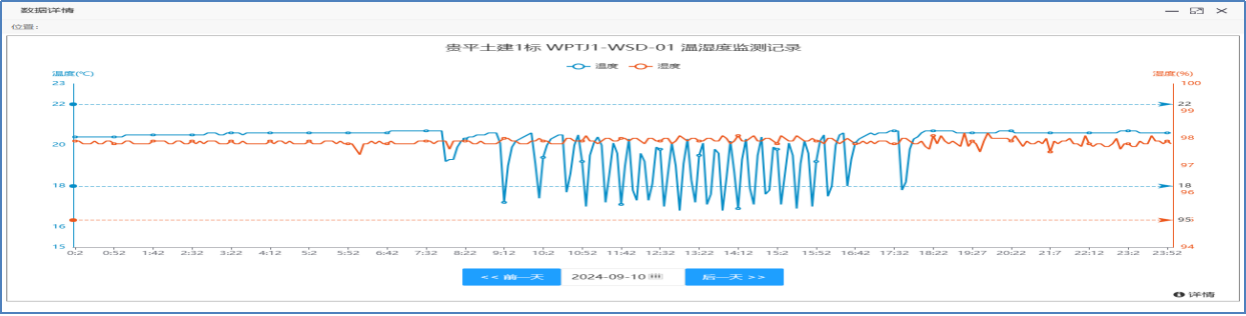 - (1)动态显示各工地试验室标准养护室的温湿度曲线和数据。